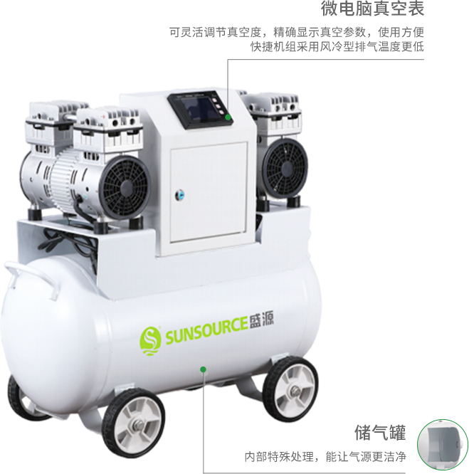 浙江盛源空壓機制造有限公司是一家研究制造無油真空泵系列、新能源電動真空泵、空氣壓縮機設備、醫療器材、永磁伺服電機、工業投資等多元化經營的大型企業,是國家高新技術企業,浙江省級技術研究開發中心。與油泵相比,無油真空泵的真空度較低,抽氣量較小,但體積小巧,易于安裝和維護。